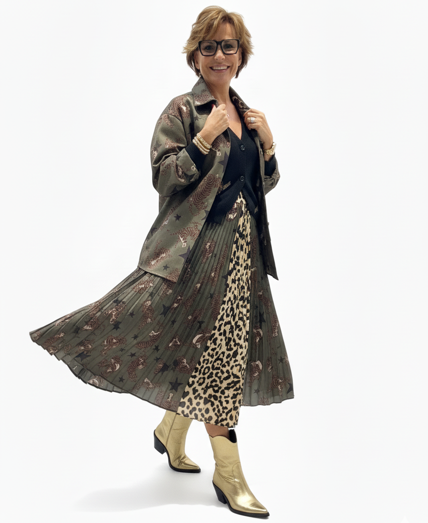 Cada pieza de este look ha sido personalmente seleccionada de nuestra colección exclusiva, una fusión perfecta entre lo clásico y lo inesperadamente disruptivo.
