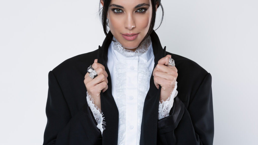 Cada pieza de este look ha sido personalmente seleccionada de nuestra colección exclusiva, una fusión perfecta entre lo clásico y lo inesperadamente disruptivo.