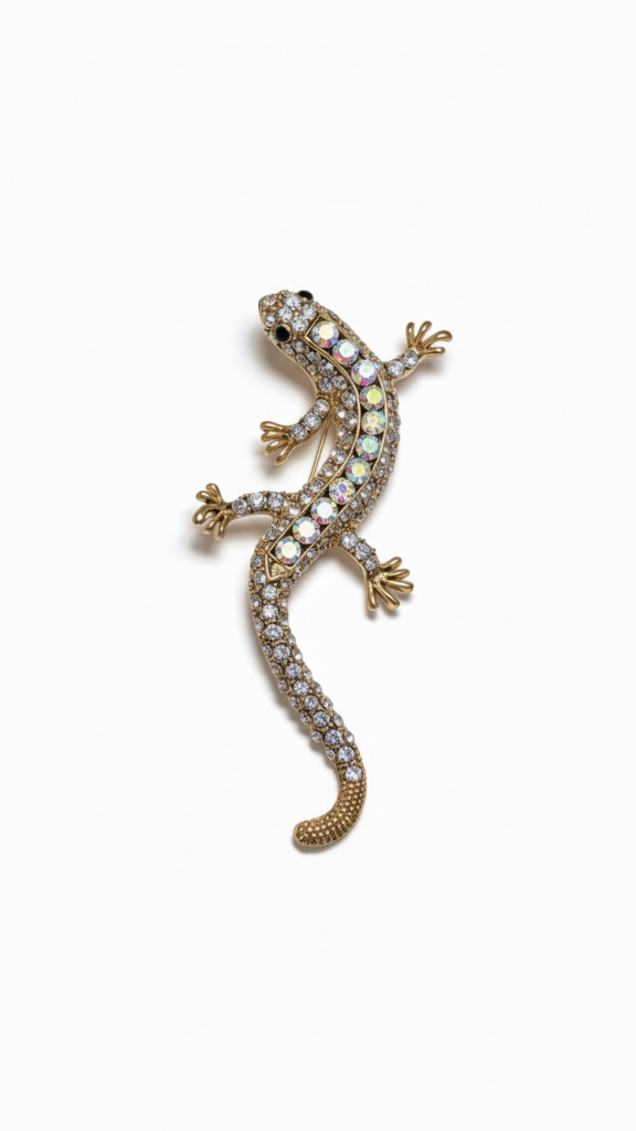 El broche Lagartija Joya es una pieza que combina la inspiración orgánica con la elegancia del estilo vintage. Su cuerpo esculpido en metal con acabado dorado envejecido sigue una línea curva que imita el movimiento natural del reptil, convirtiéndolo en un accesorio dinámico que atrae todas las miradas.