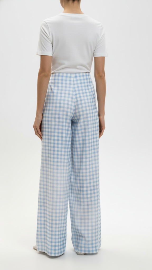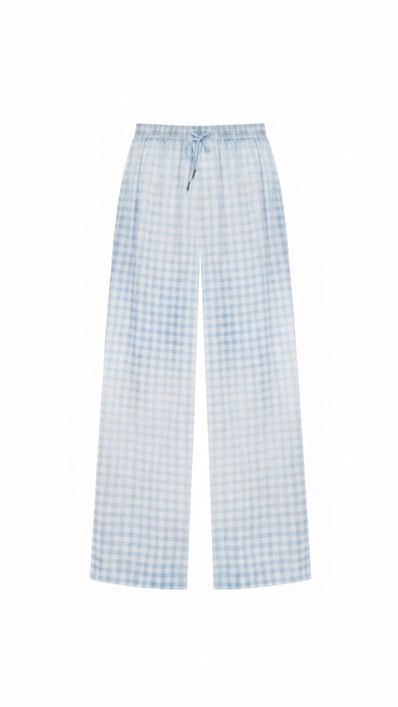 Descubra el lujo relajado con estos pantalones de estampado vichy en algodón premium. Su silueta fluida de pierna ancha y cintura elástica ajustable ofrece un confort inigualable y una elegancia discreta. Ideales para looks sofisticados de día o noche, son la personificación del estilo ‘quiet luxury’.