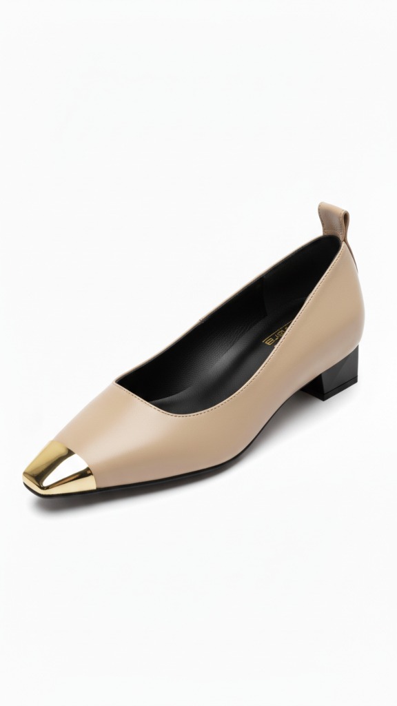 Cada par de estos exquisitos salones encarna una meticulosa artesanía, donde la precisión de los cortes y la unión de la piel de la más alta calidad se ejecutan con maestría sublime. Su tacto suave y flexible promete una experiencia de confort inigualable, adaptándose con elegancia a cada paso. El diseño se distingue por una puntera afilada, realzada con un distintivo detalle metálico en tono dorado que añade un toque de sofisticación contemporánea. Su escote sutilmente cuadrado y el tacón bloque de perfil bajo, con un acabado en contraste, ofrecen una silueta equilibrada y moderna. Perfectos para transitar del día a la noche, estos salones son la quintaesencia del lujo discreto, complementando a la perfección tanto atuendos de oficina como estilismos más sofisticados para eventos selectos, afirmando un gusto impecable sin esfuerzo.